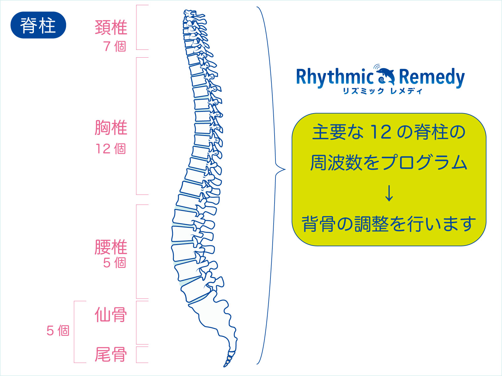 それぞれ大切な役割をしておりますが、その中で主要な12個の脊柱の周波数をプログラムし、背骨の調整を行います。