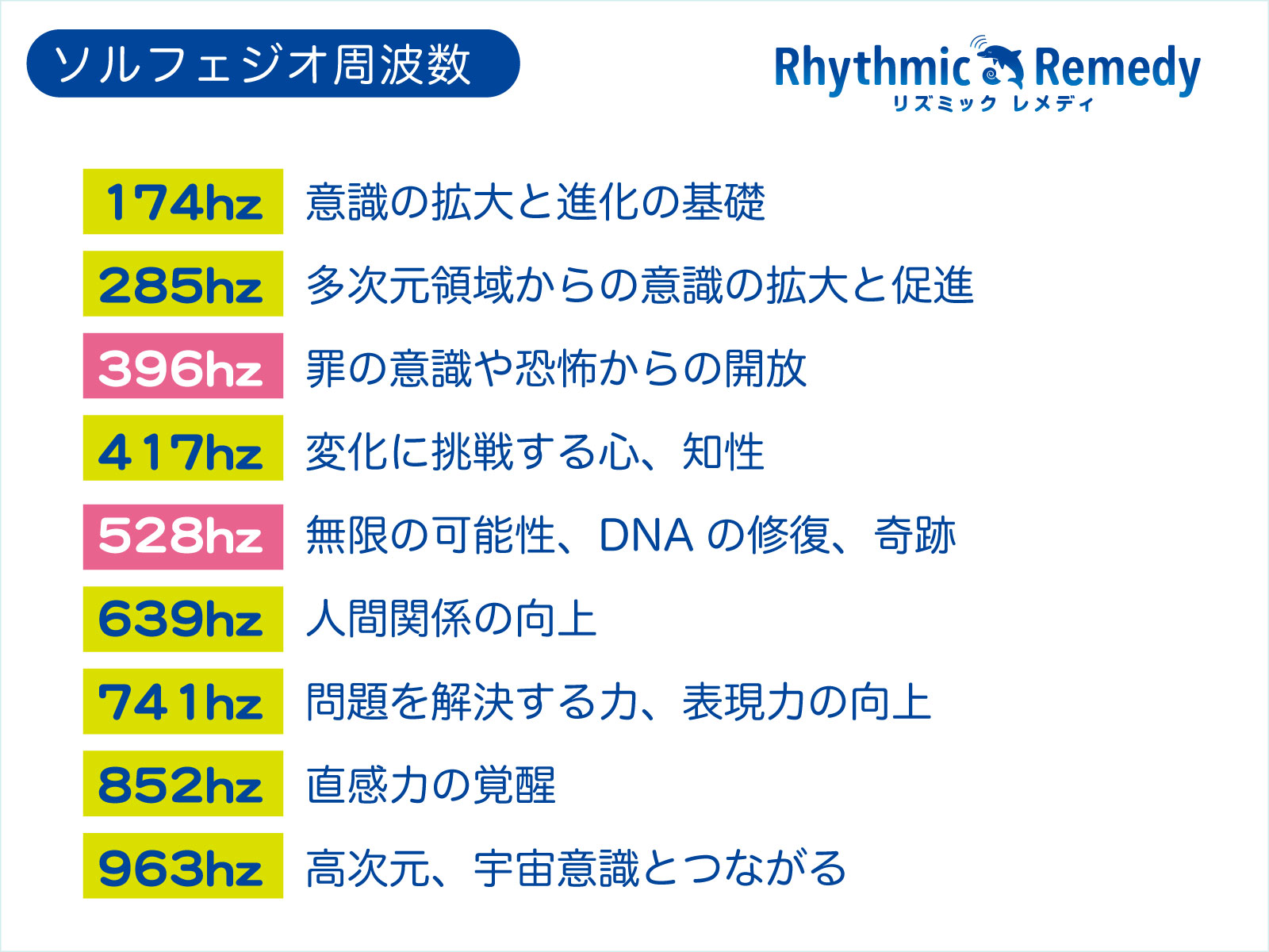 9種類のソルフェジオ周波数には、それぞれ以下のような効果があると考えられています。